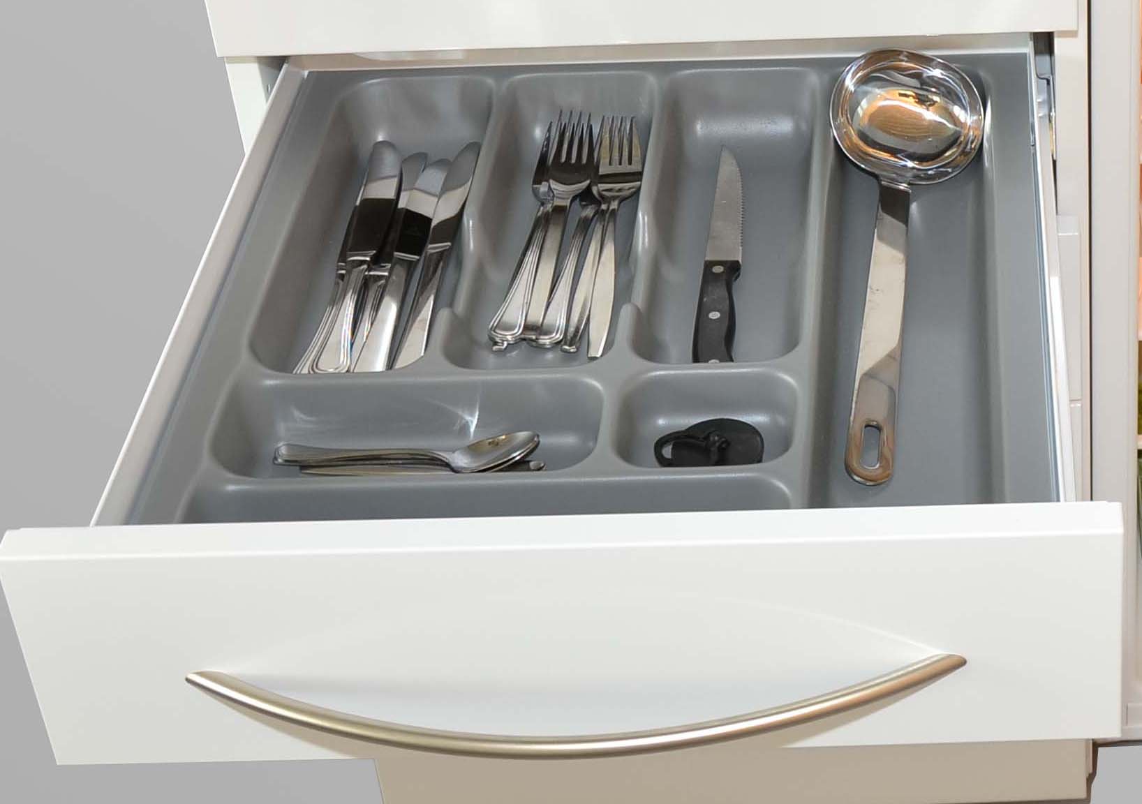 • und weiterem Zubehör wie Besteckeinsätzen und Einlegeböden.