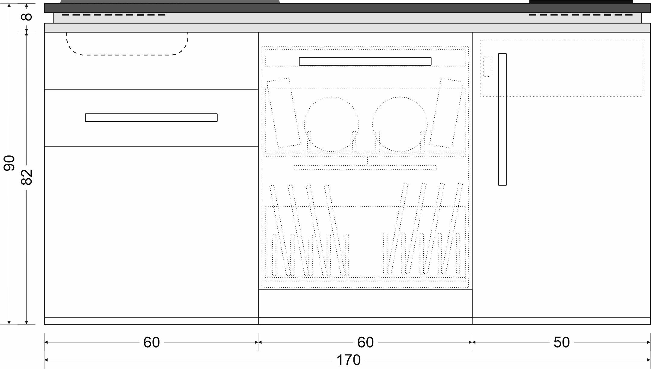 Designline Küche mit Kühlschrank, grossem Geschirrspüler, 170 cm breit