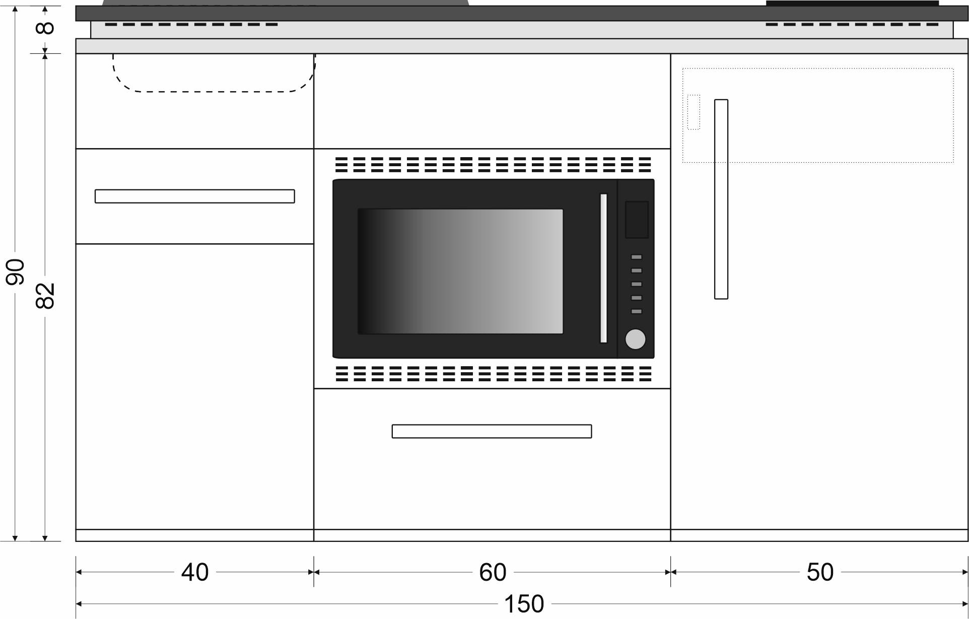 Designline Küche mit Kühlschrank, Mikrowelle/Grill, Schublade, 150 cm breit