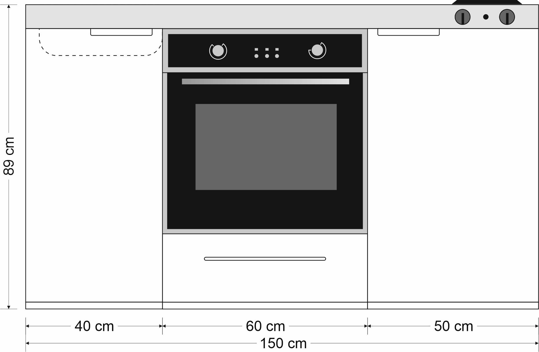 Küche mit Kühlschrank, Backofen, 150 cm breit