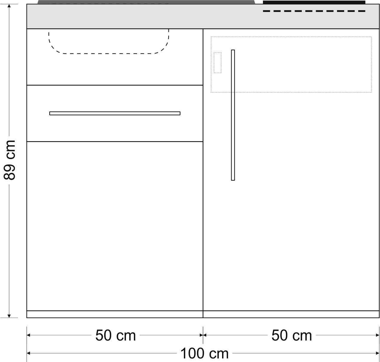 Miniküche Premiumline mit Kühlschrank, Schublade, 100 cm breit