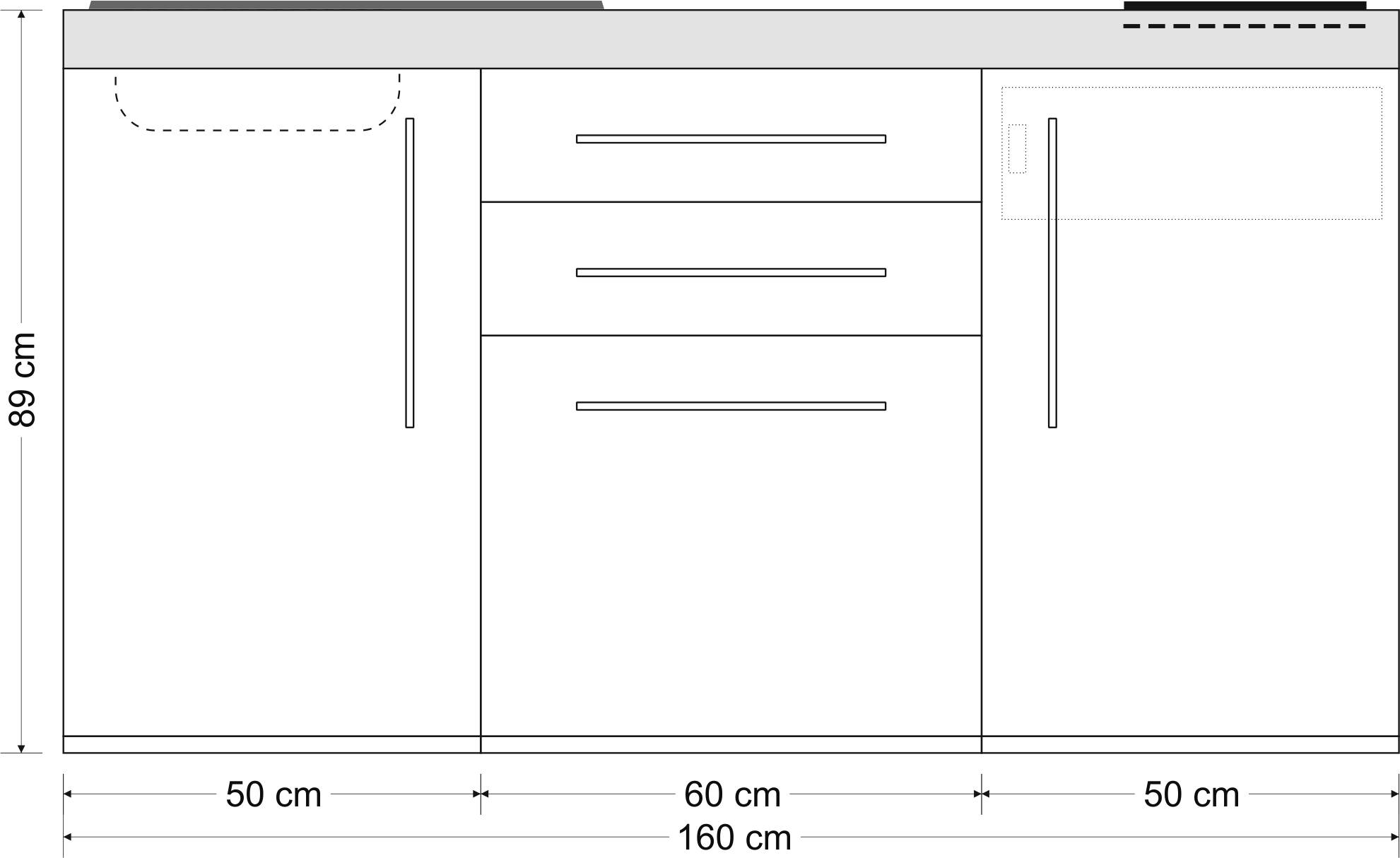 Miniküche Premiumline mit Kühlschrank, 160 cm breit