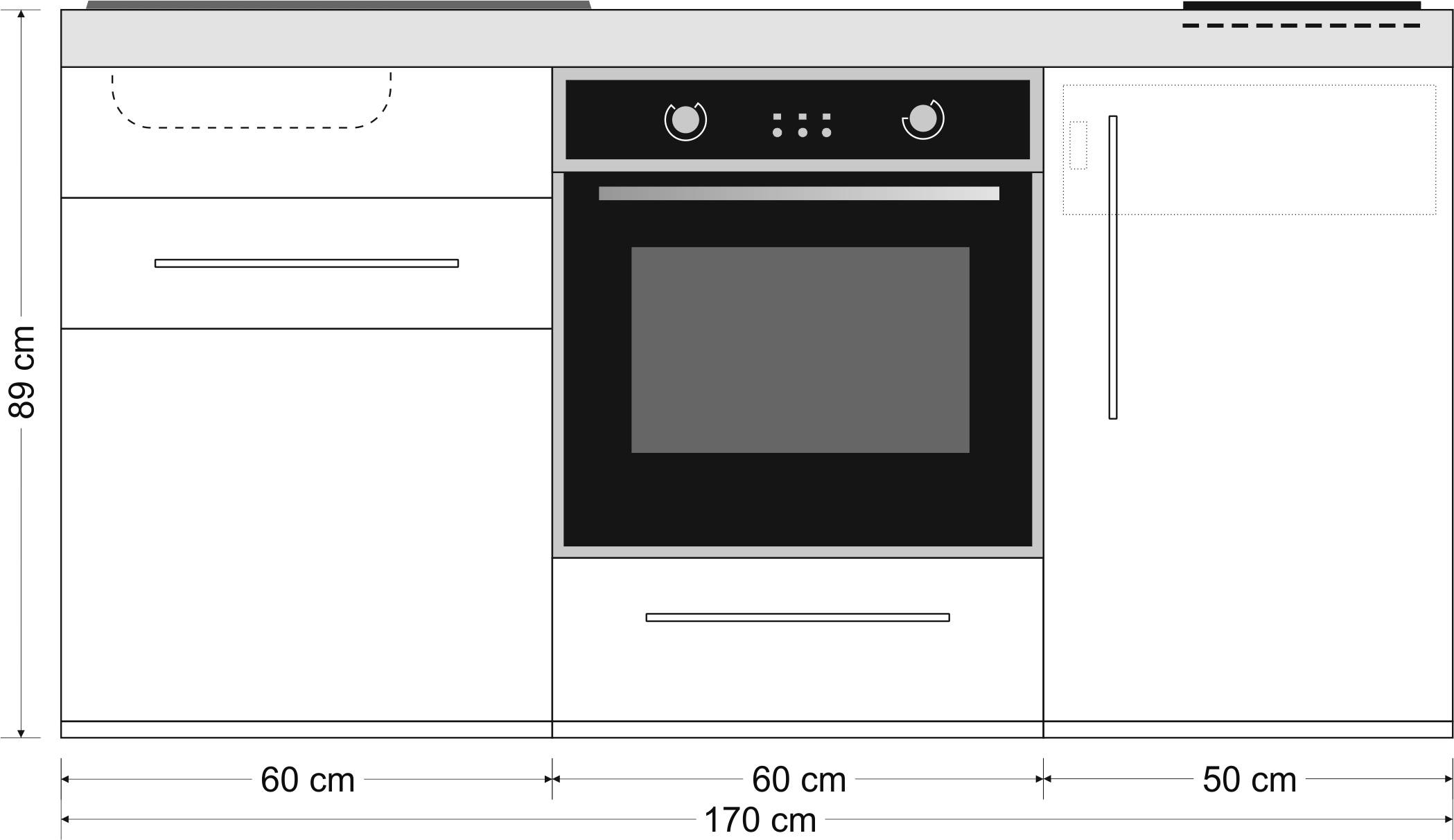 Miniküche Premiumline mit Kühlschrank, Backofen, 170 cm breit