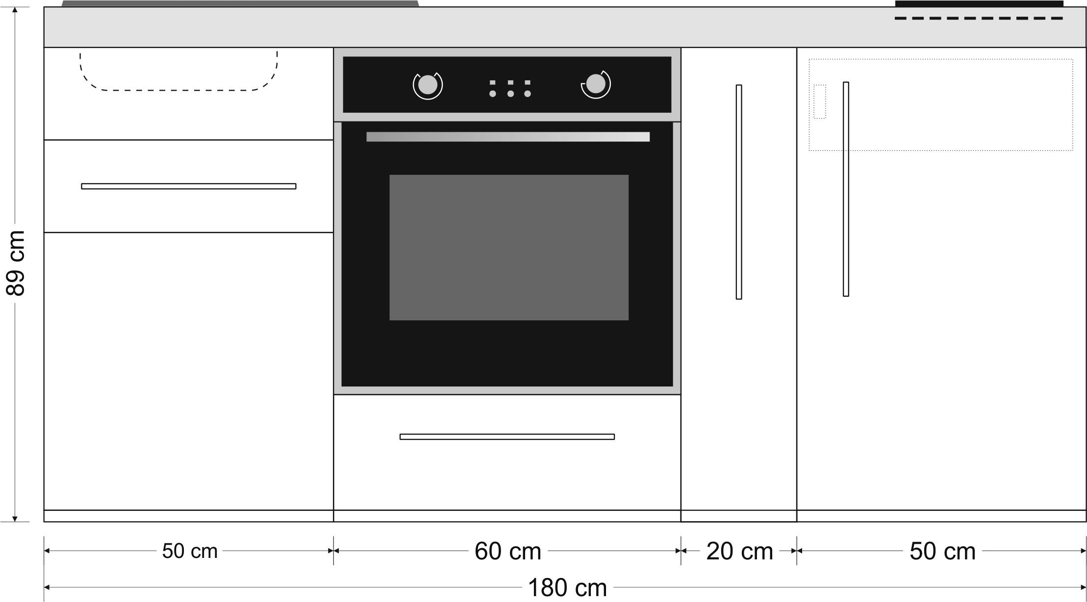 Miniküche Premiumline mit Kühlschrank, Backofen, Auszug, 180 cm breit