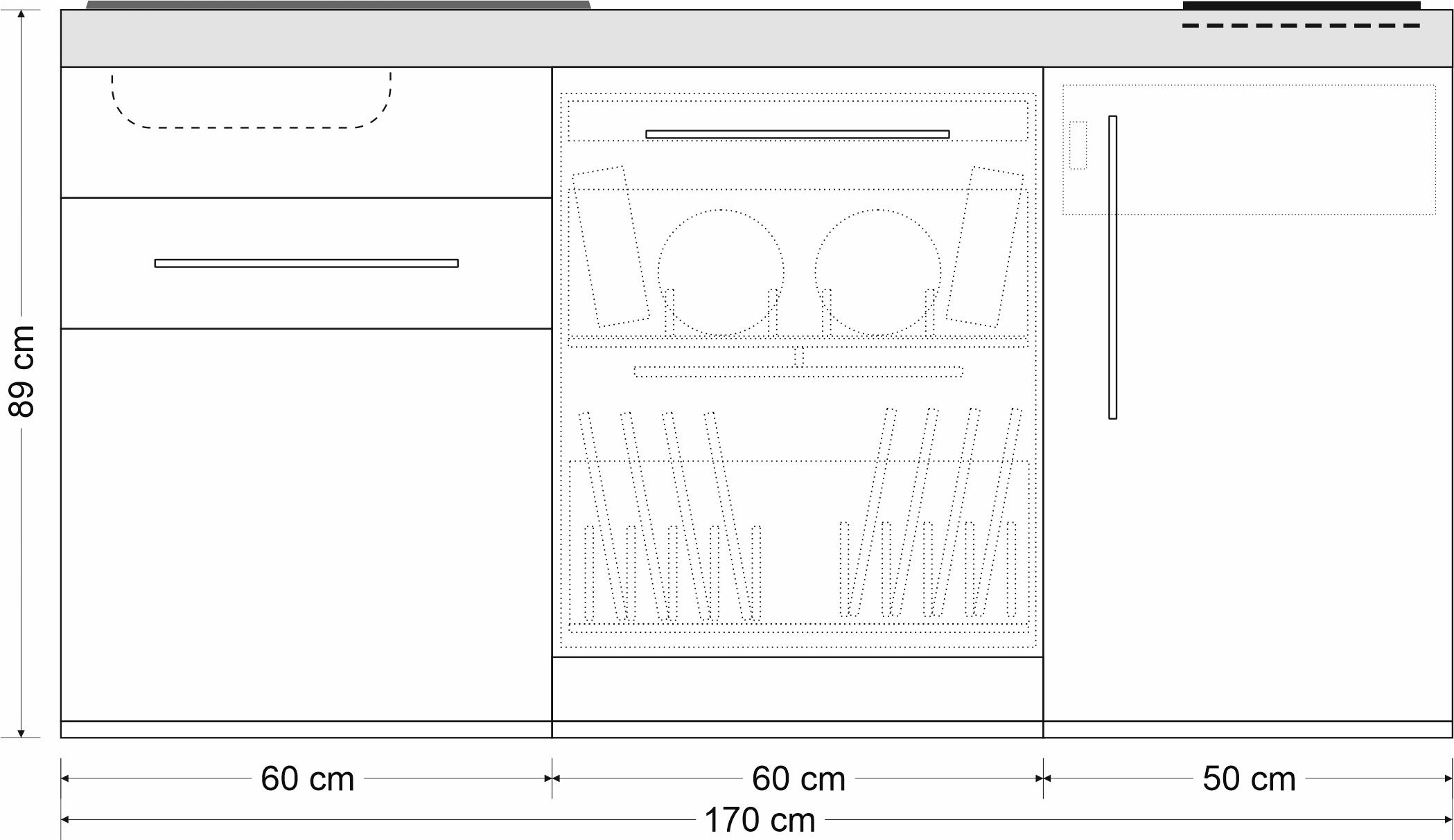 Miniküche Premiumline mit Kühlschrank, grossem Geschirrspüler, 170 cm breit