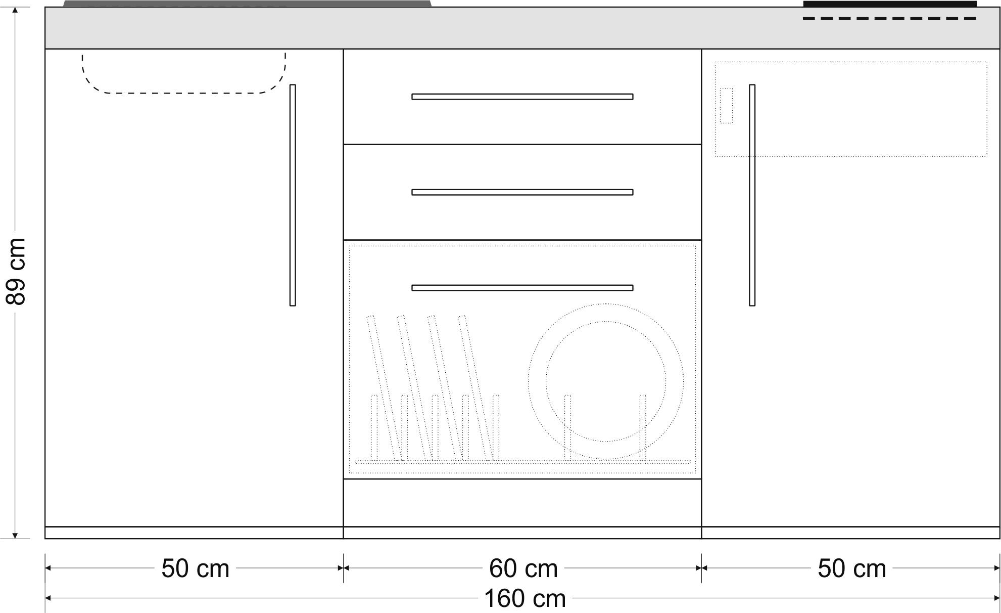 Miniküche Premiumline mit Kühlschrank, Geschirrspüler, 160 cm breit