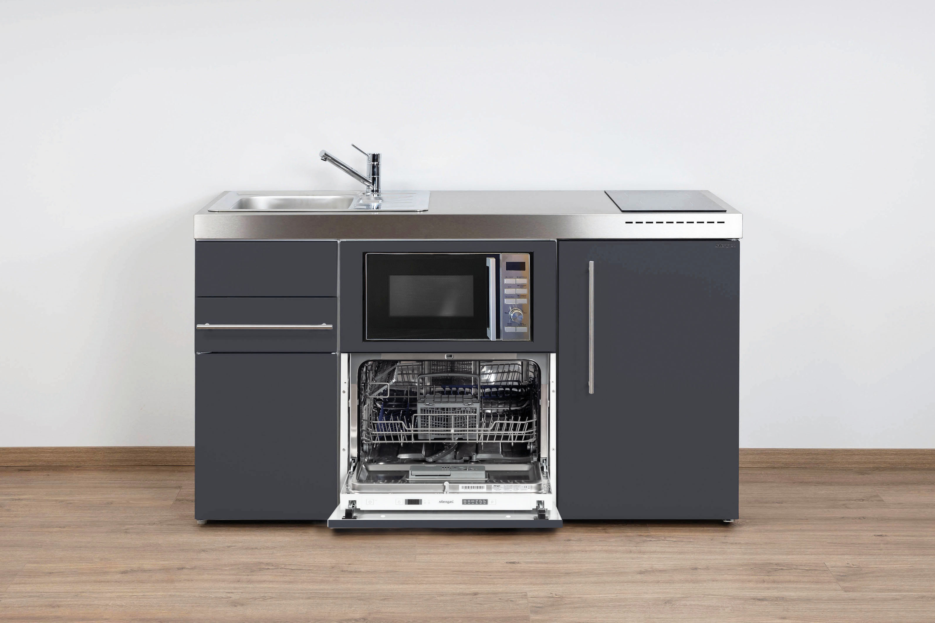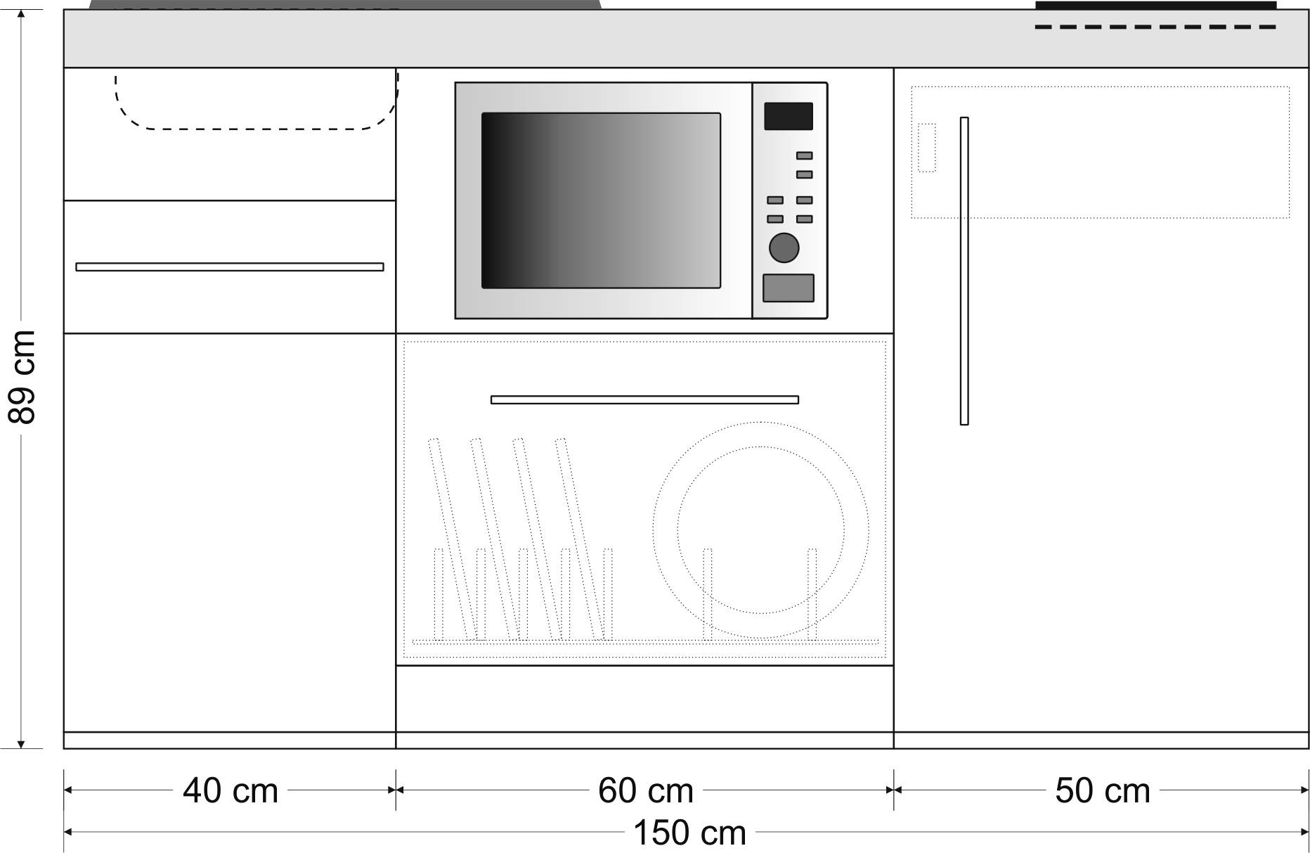 Miniküche Premiumline mit Kühlschrank, Geschirrspüler, Mikrowelle, 150 cm breit