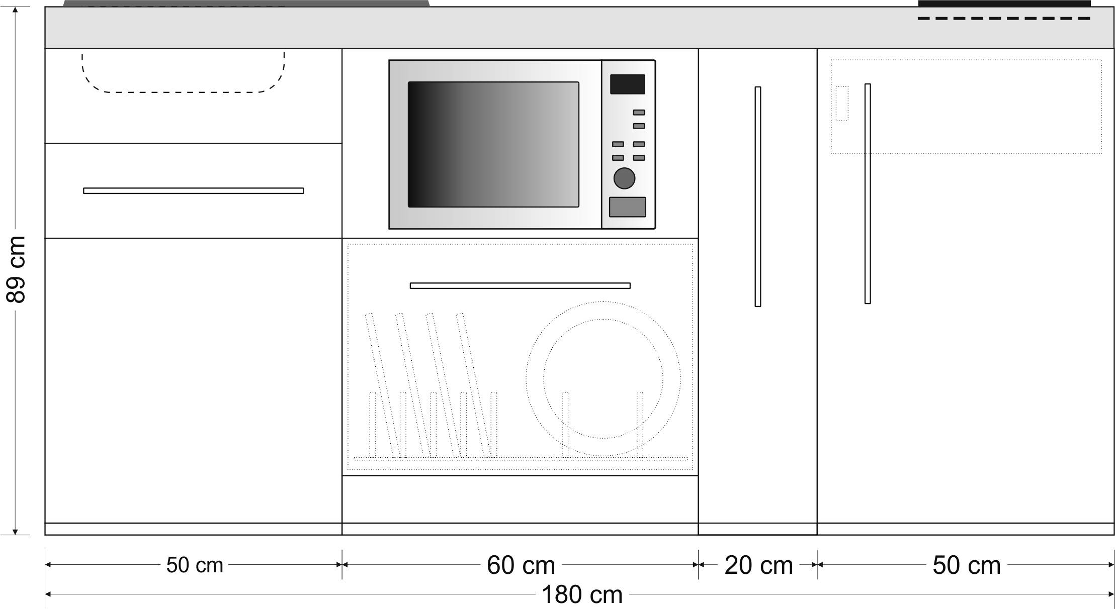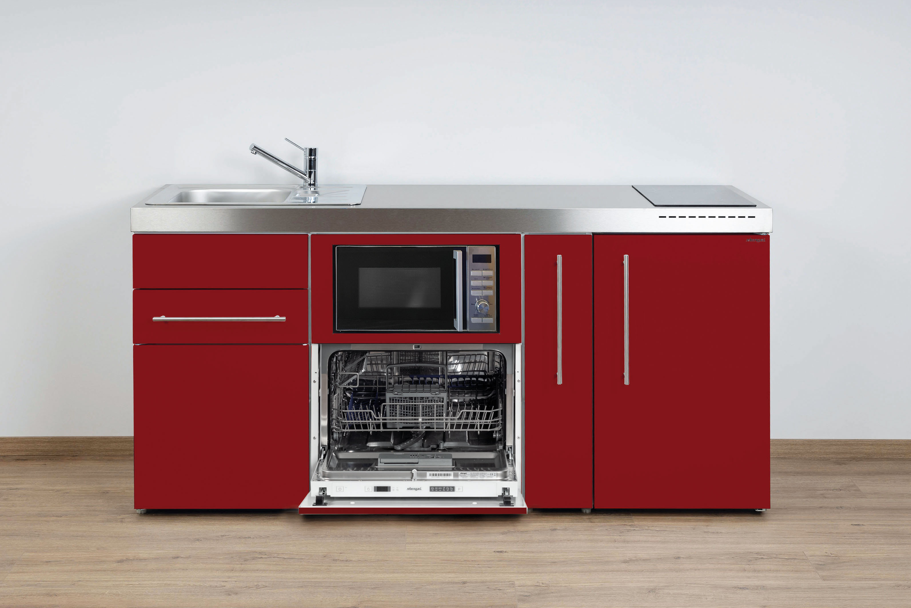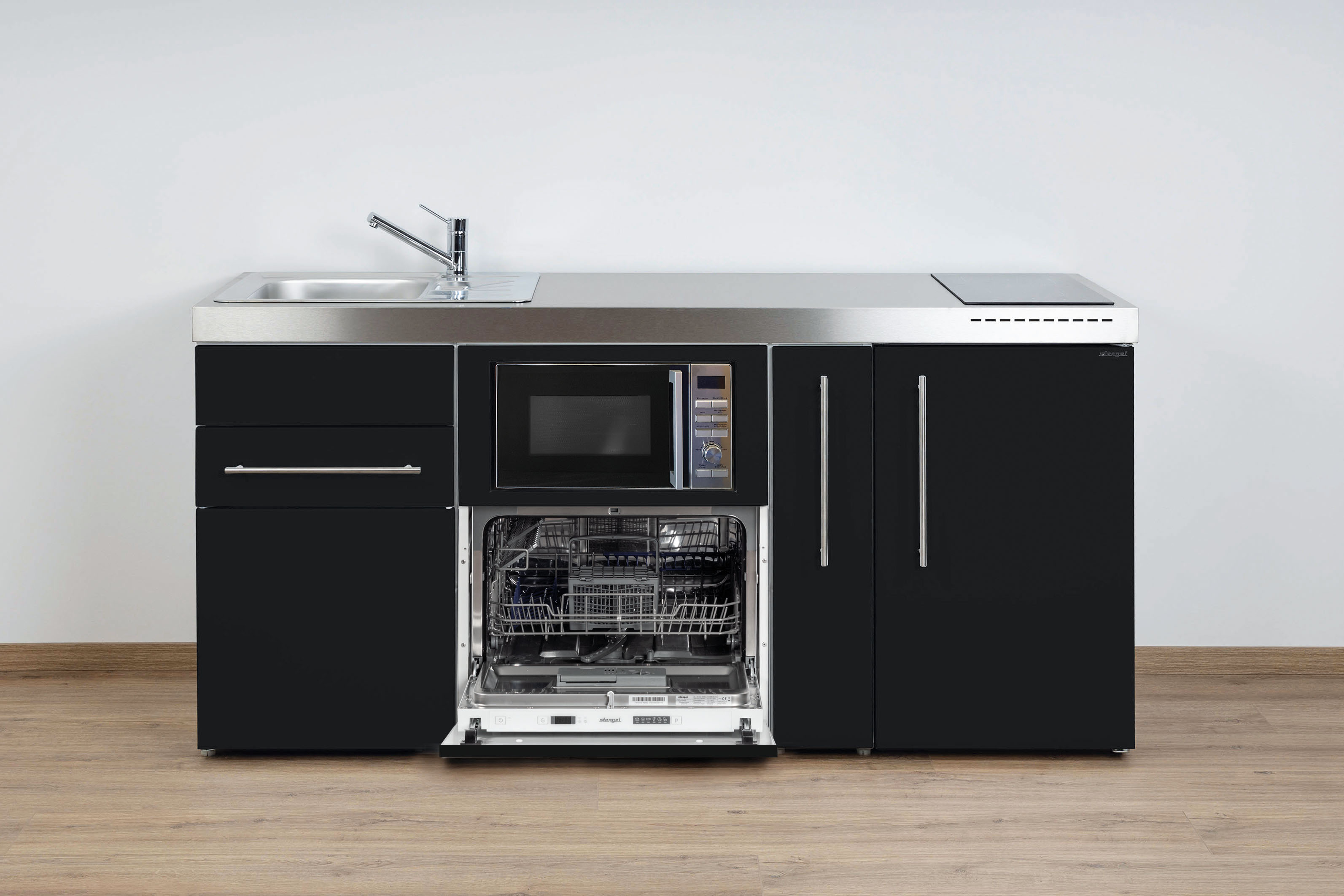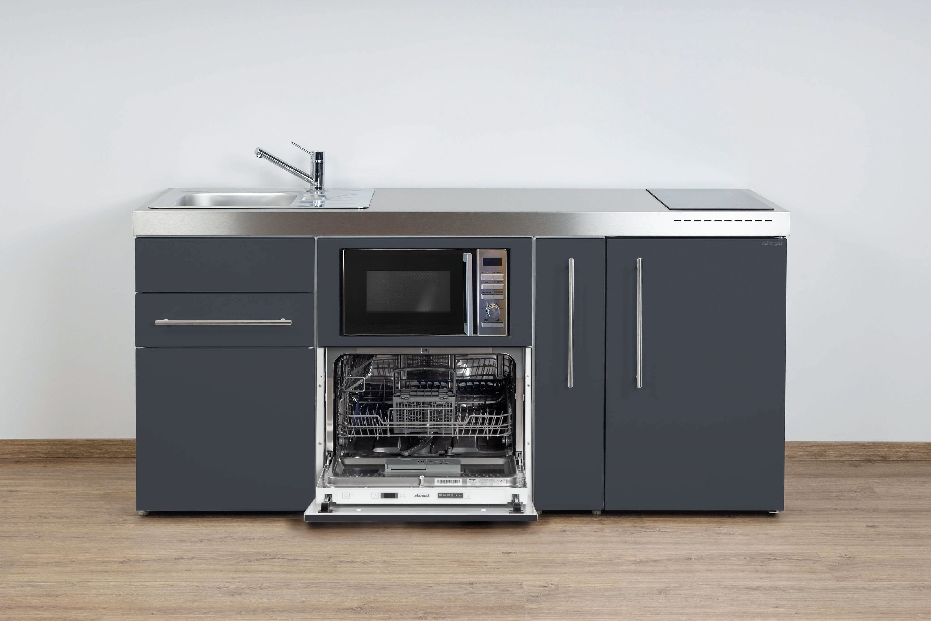 Miniküche Premiumline mit Kühlschrank, Geschirrspüler, Mikrowelle, Auszug, 180 cm breit