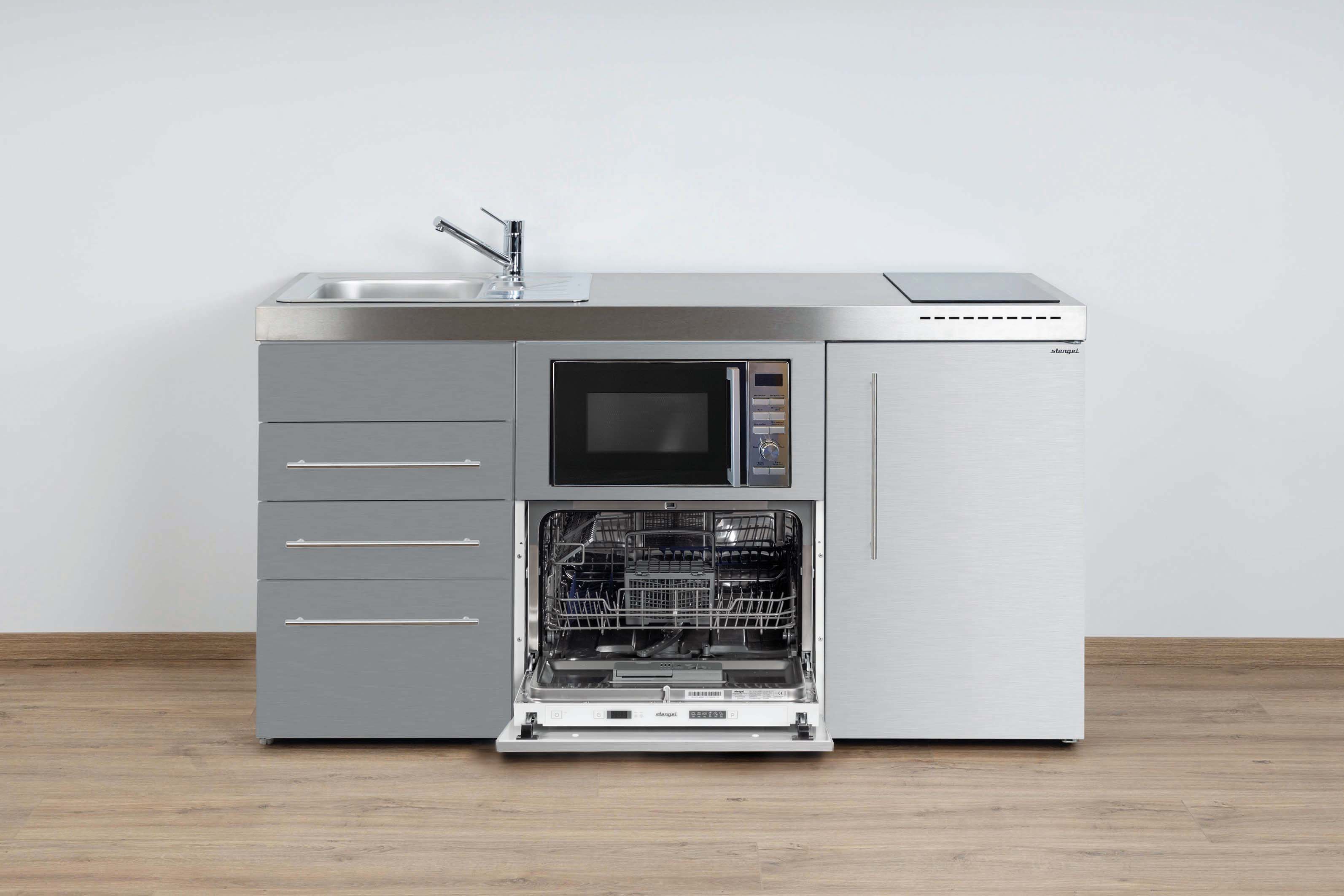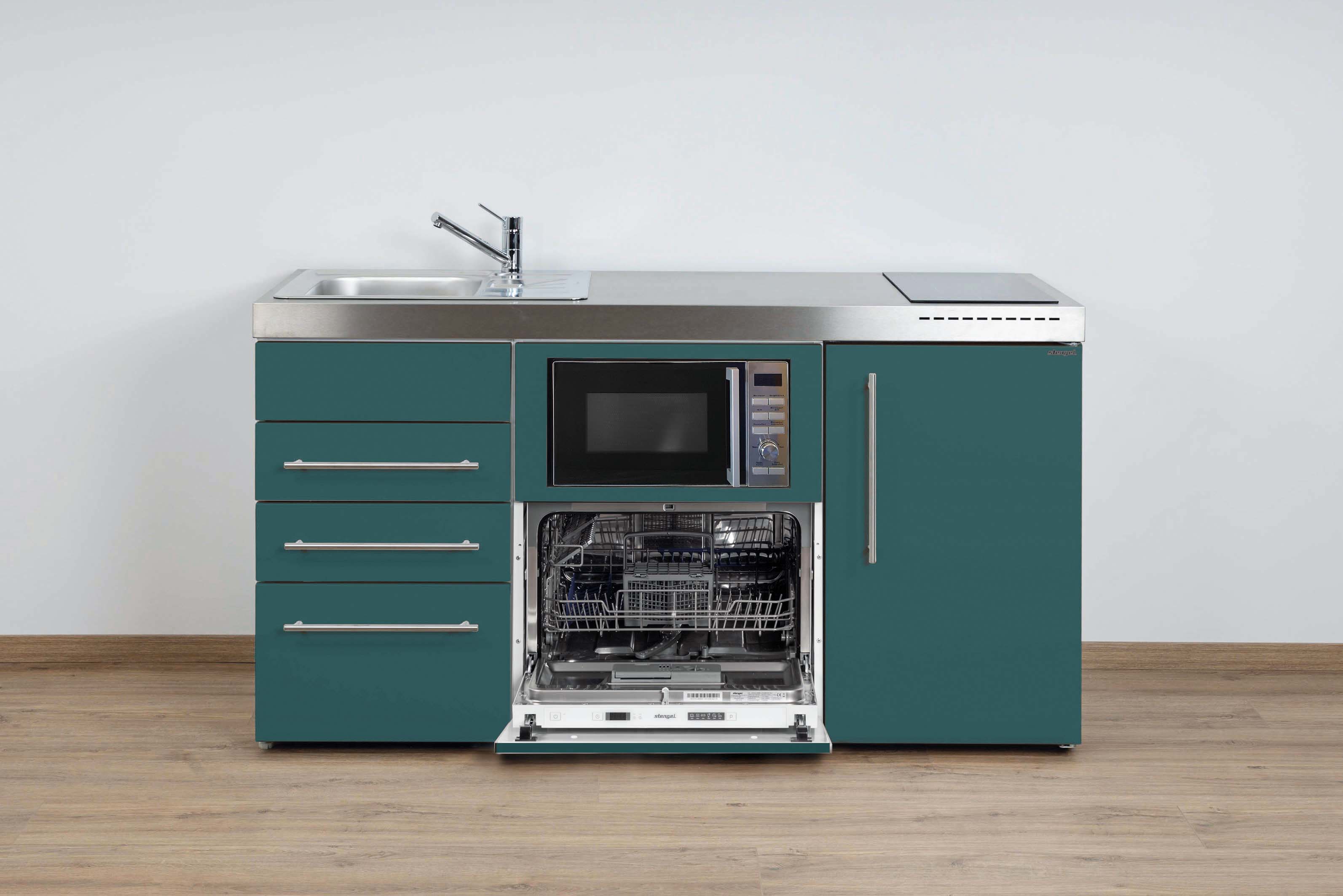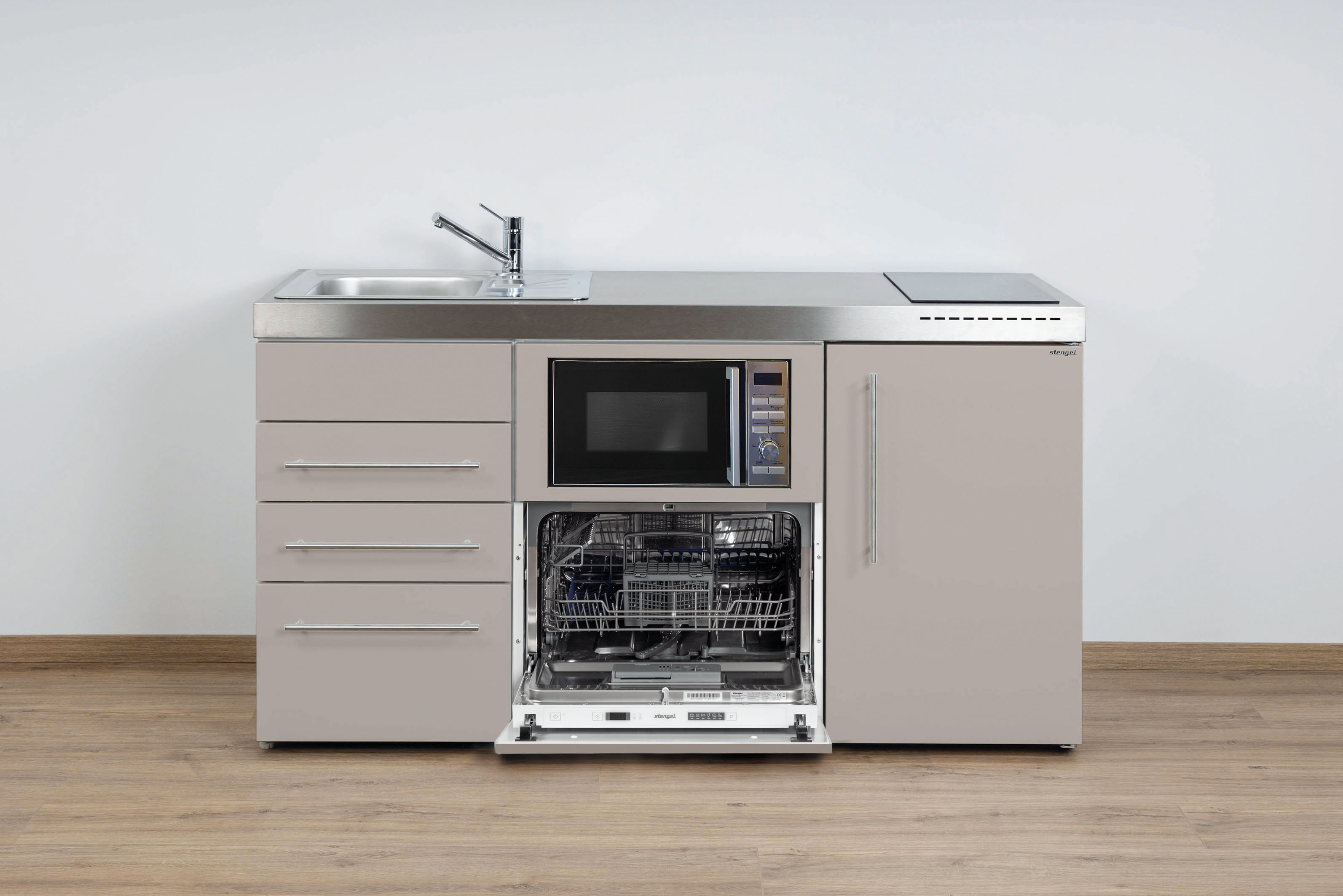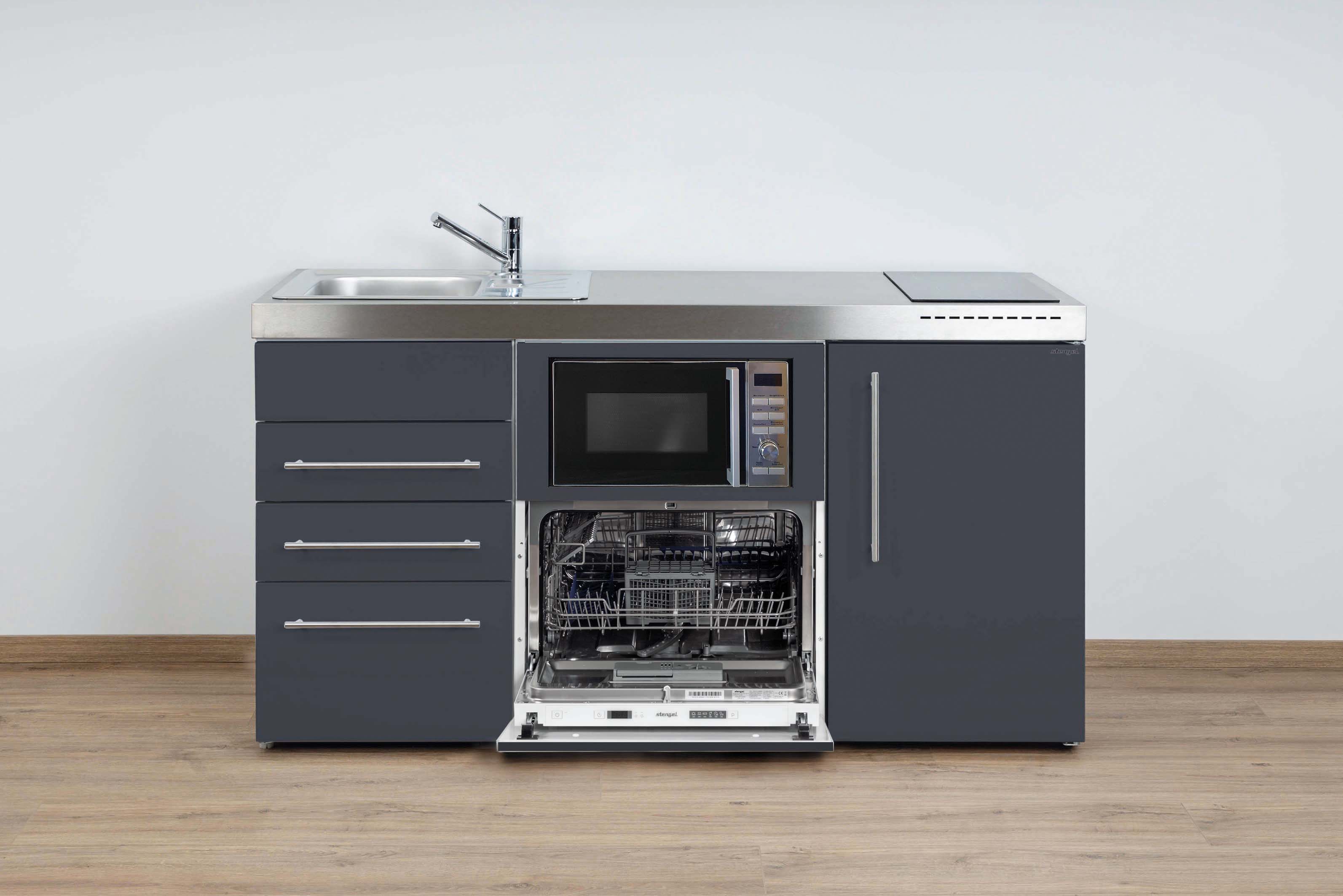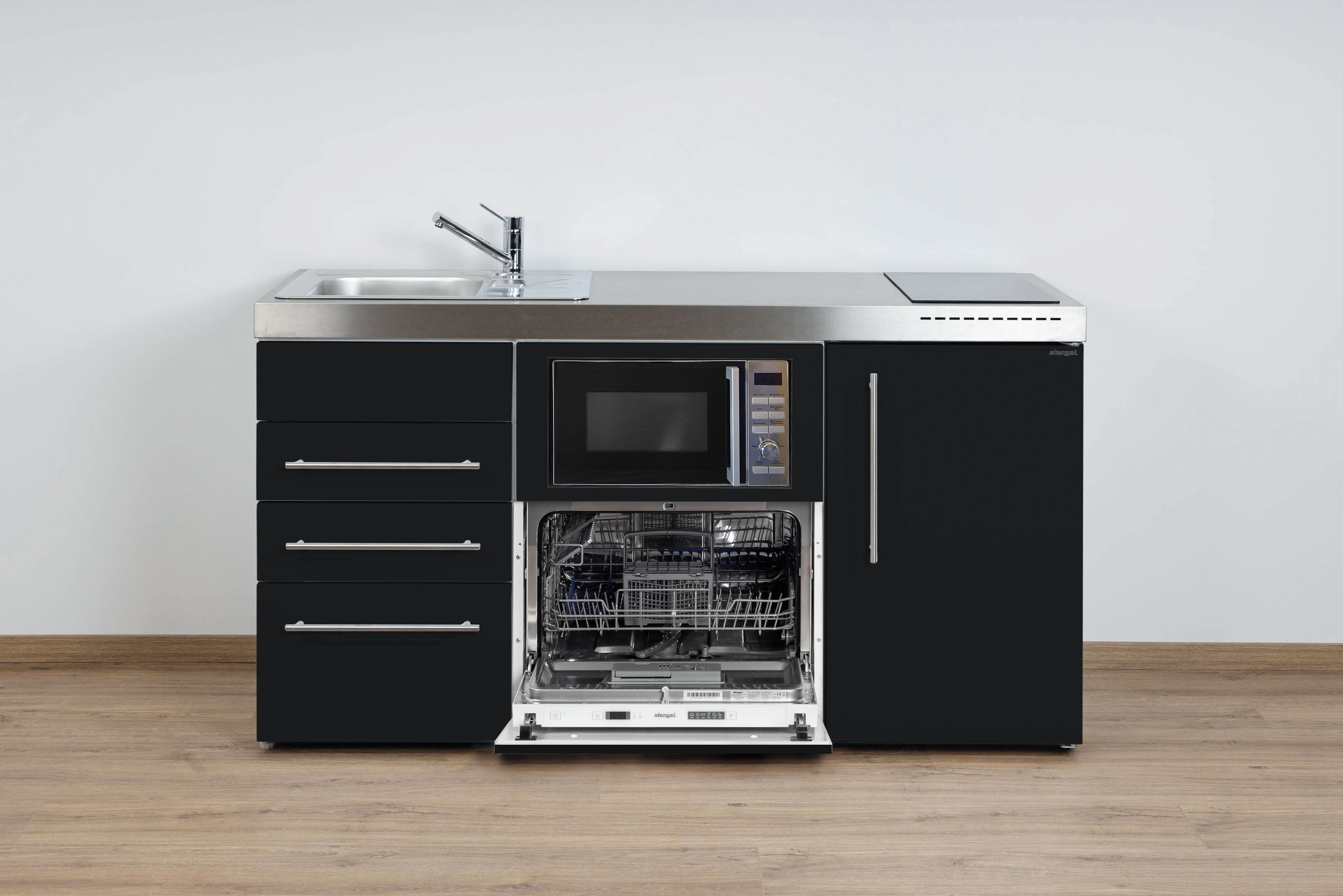 Miniküche Premiumline mit Kühlschrank, Geschirrspüler, Mikrowelle, 3 Schubladen, 160 cm breit