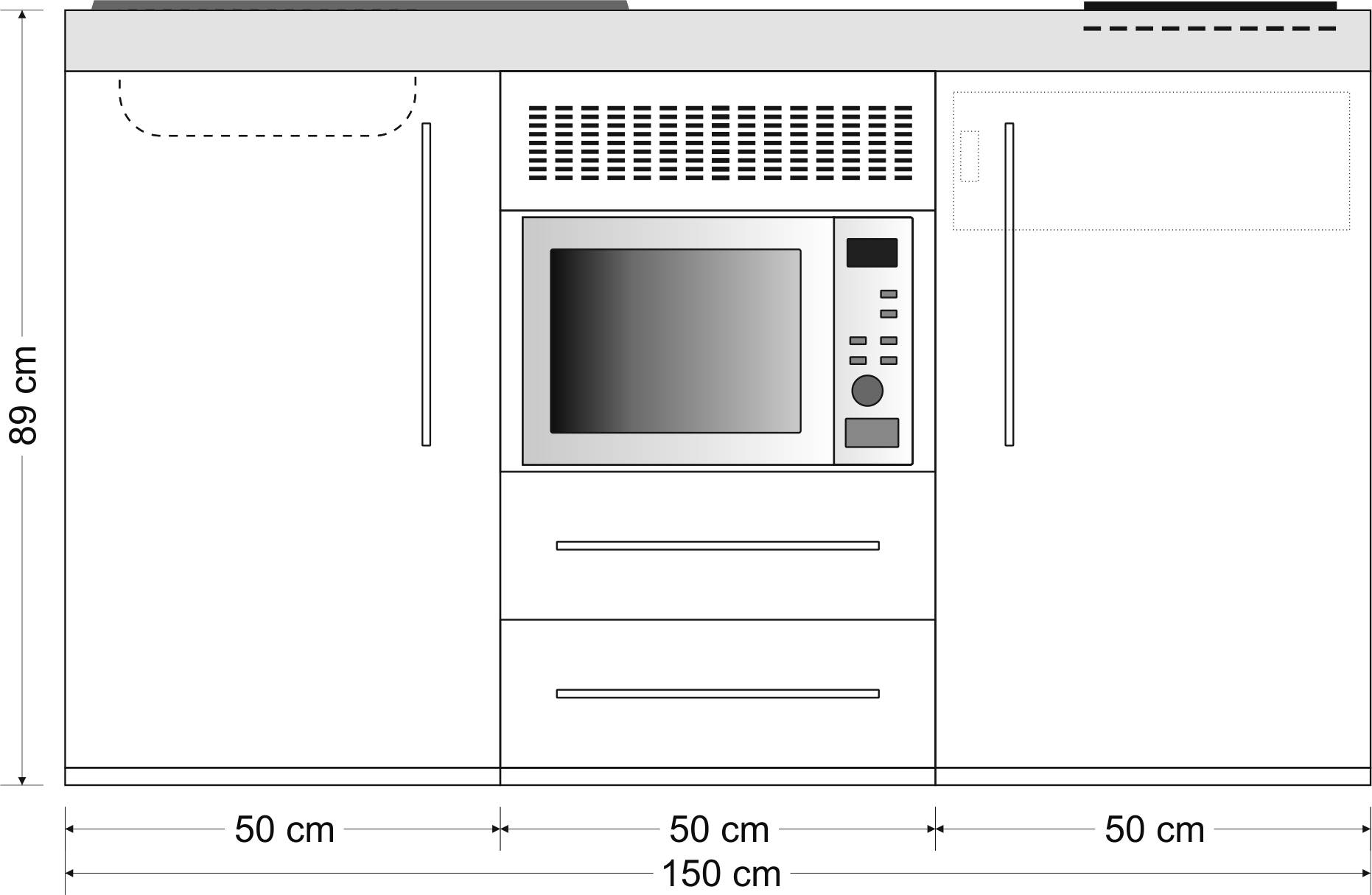 Miniküche Premiumline mit Kühlschrank, Mikrowelle, 150 cm breit