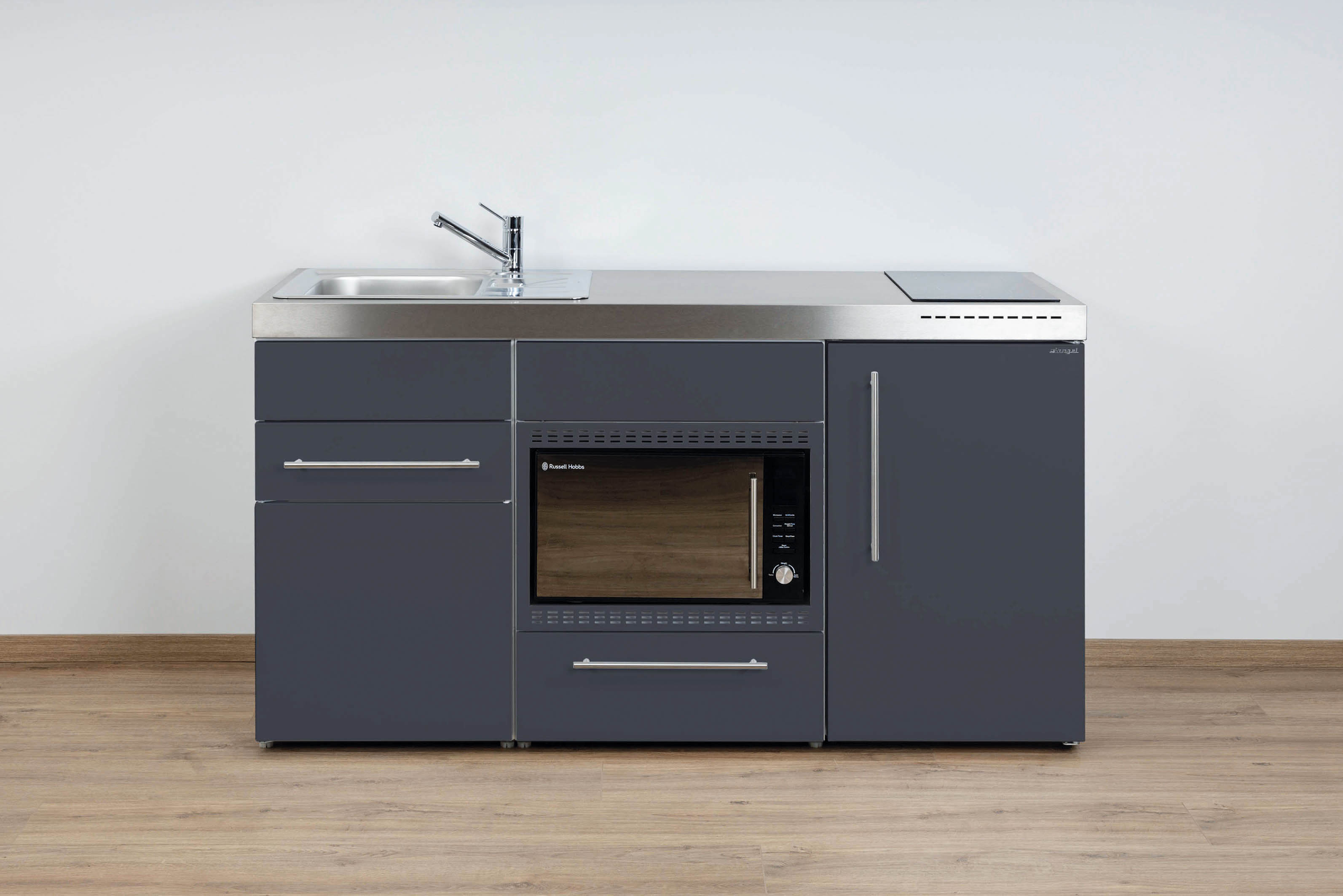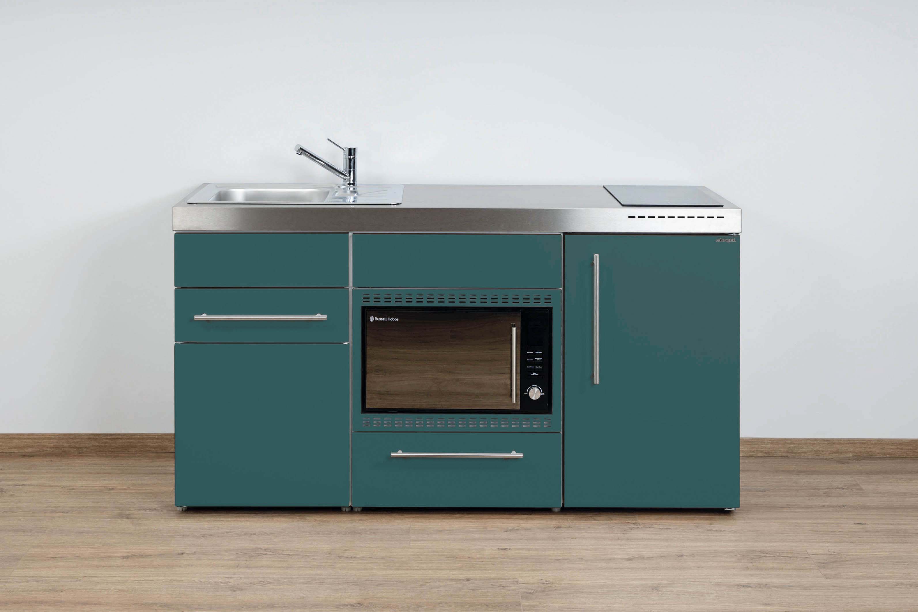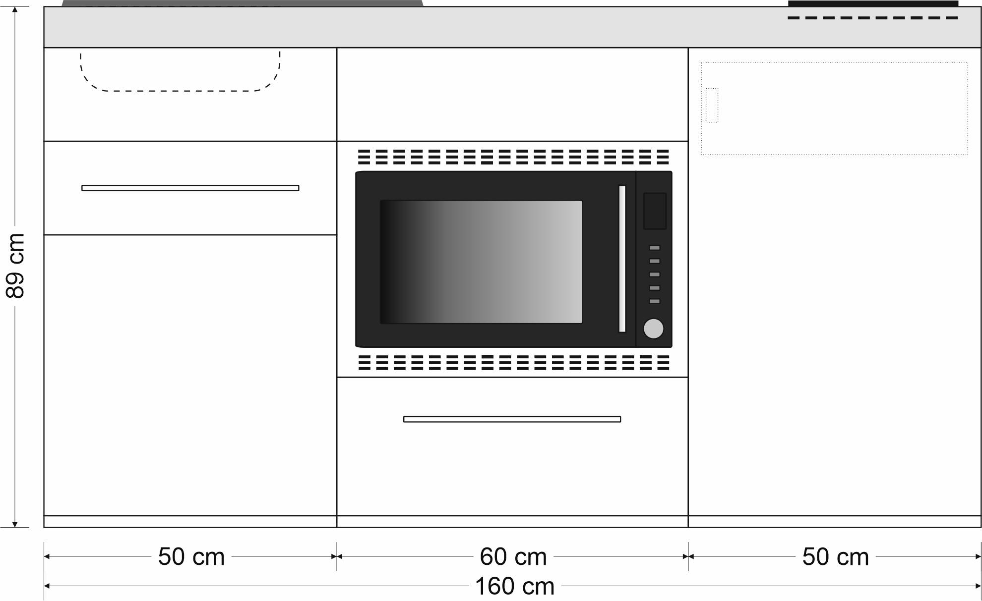 Miniküche Premiumline mit Kühlschrank, Mikrowelle/Grill, Schublade, 160 cm breit
