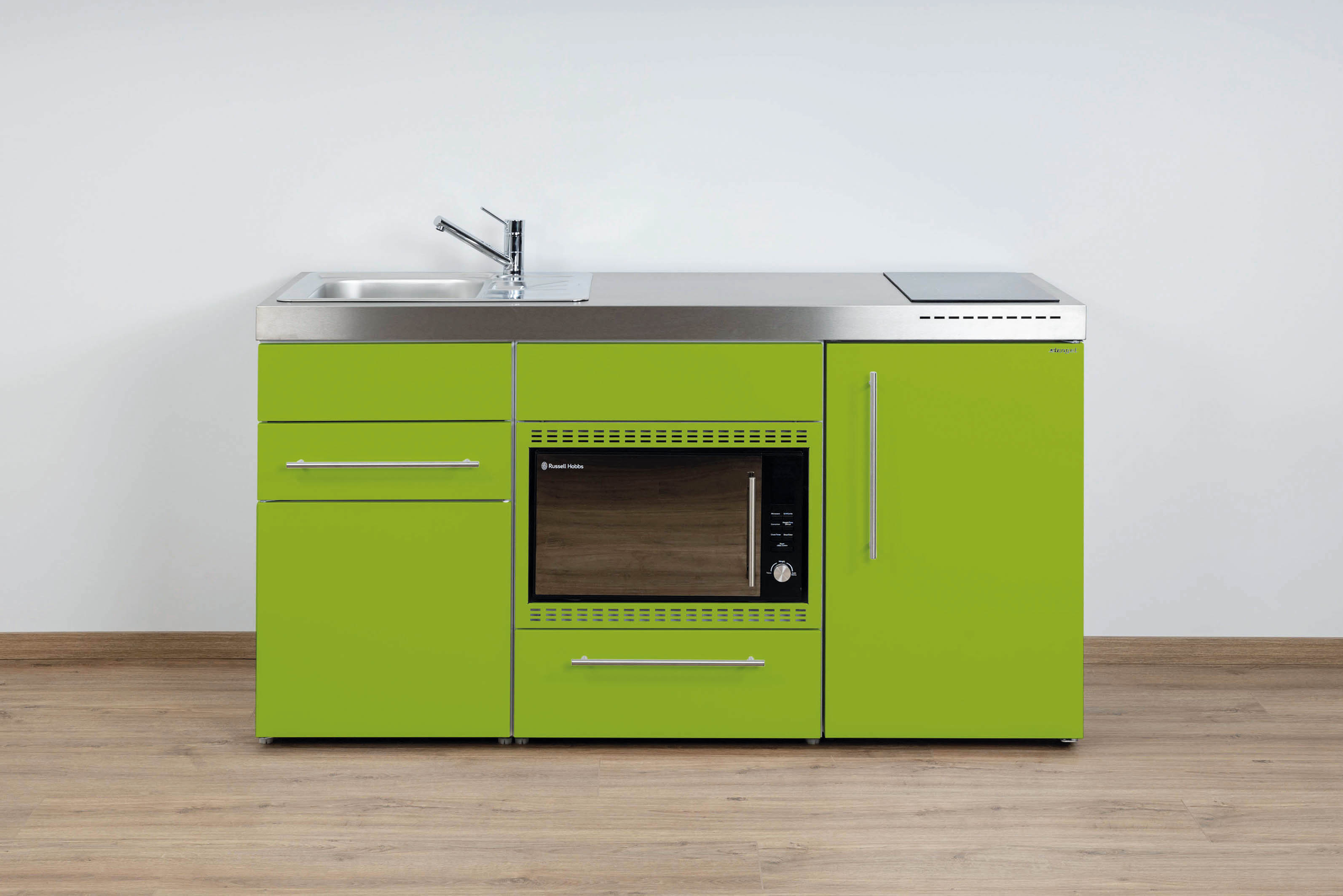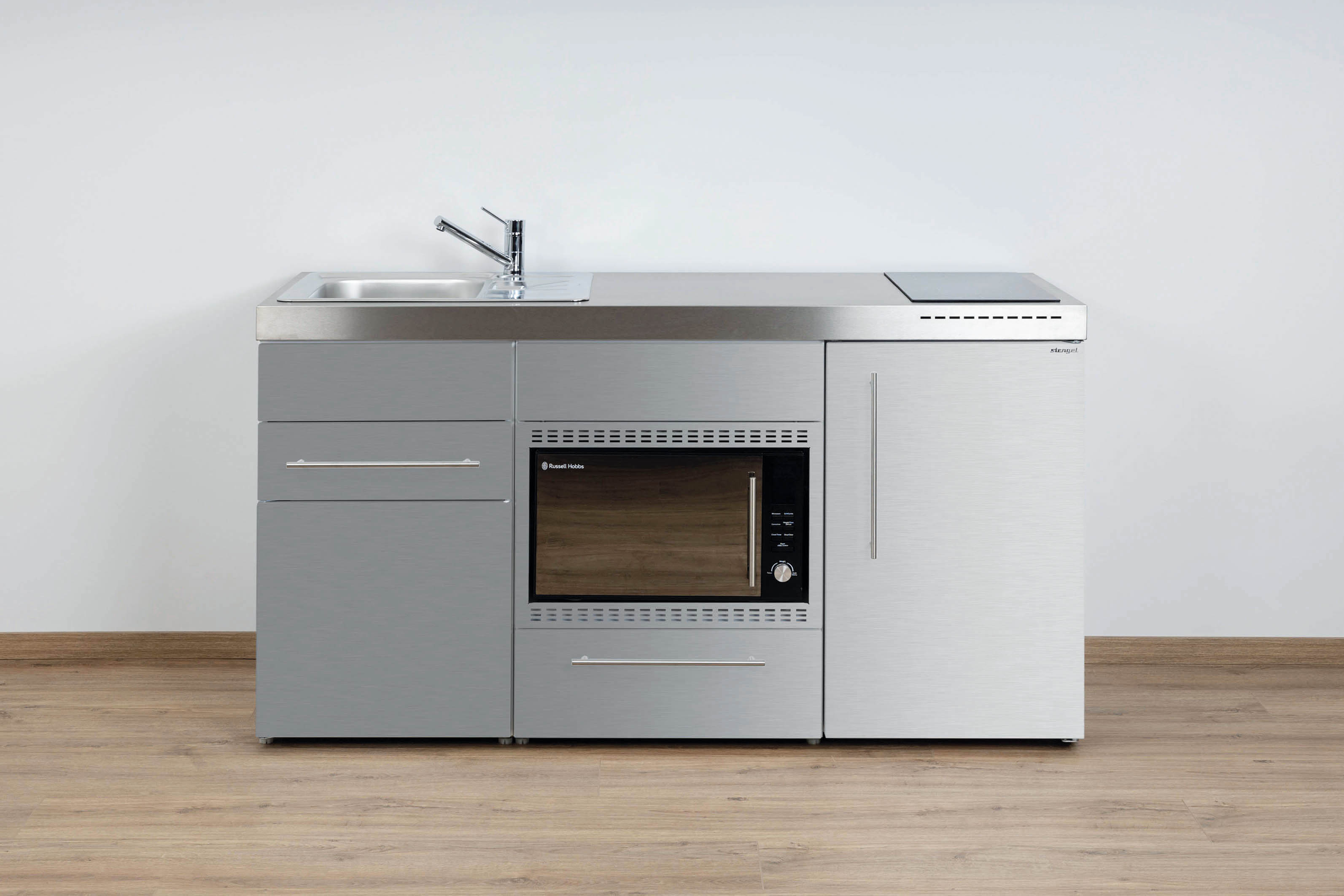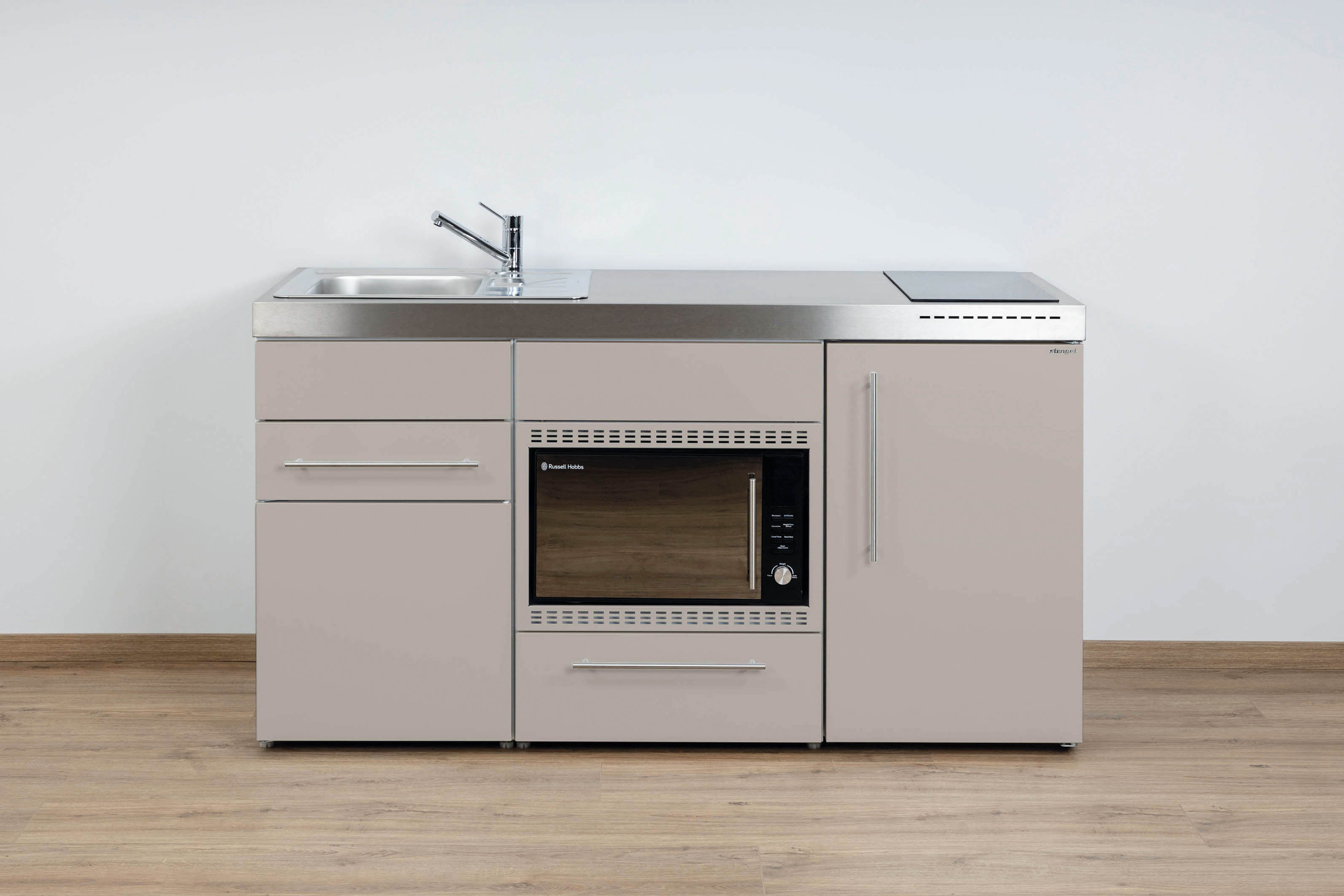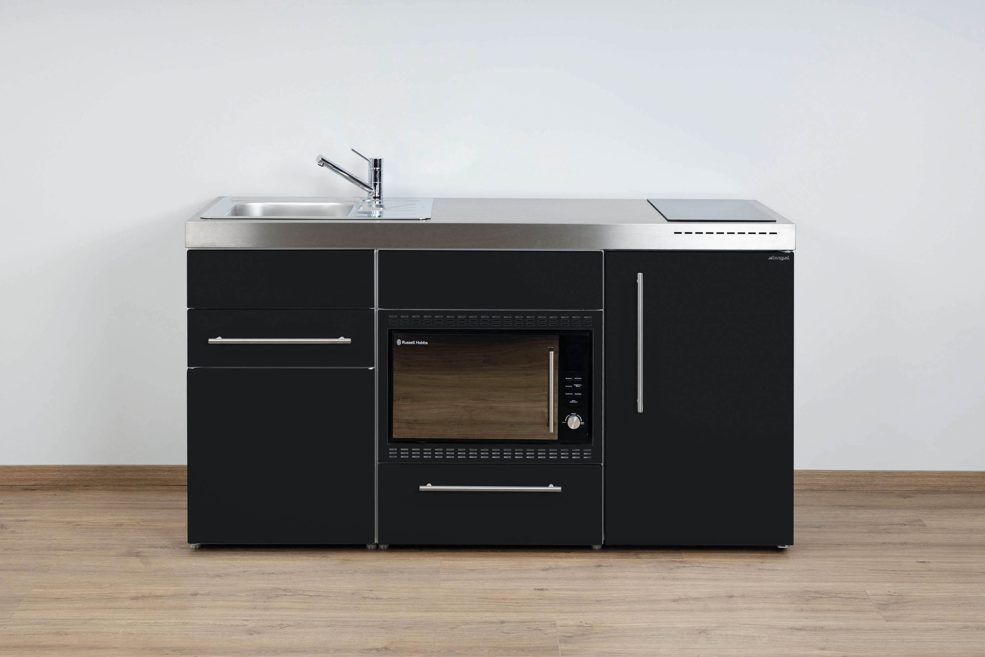 Miniküche Premiumline mit Kühlschrank, Mikrowelle/Grill, Schublade, 160 cm breit