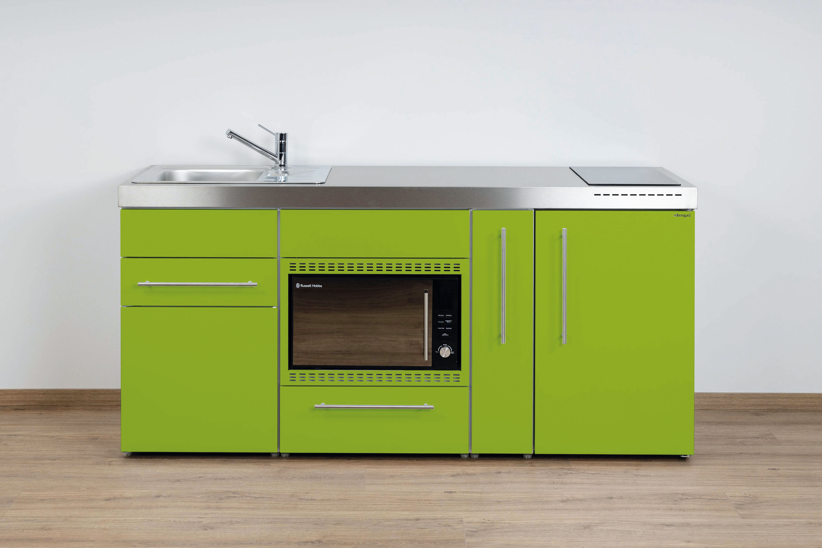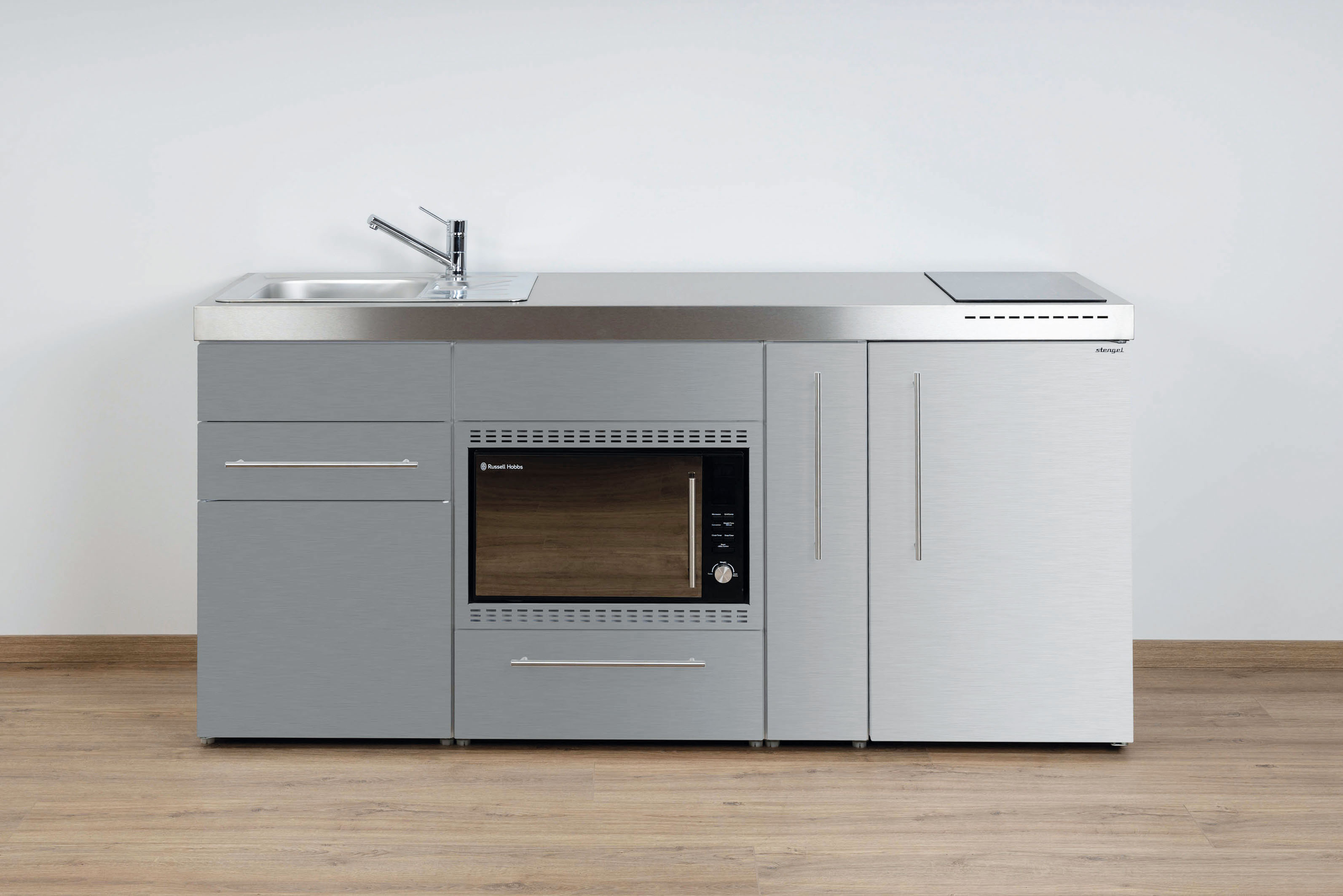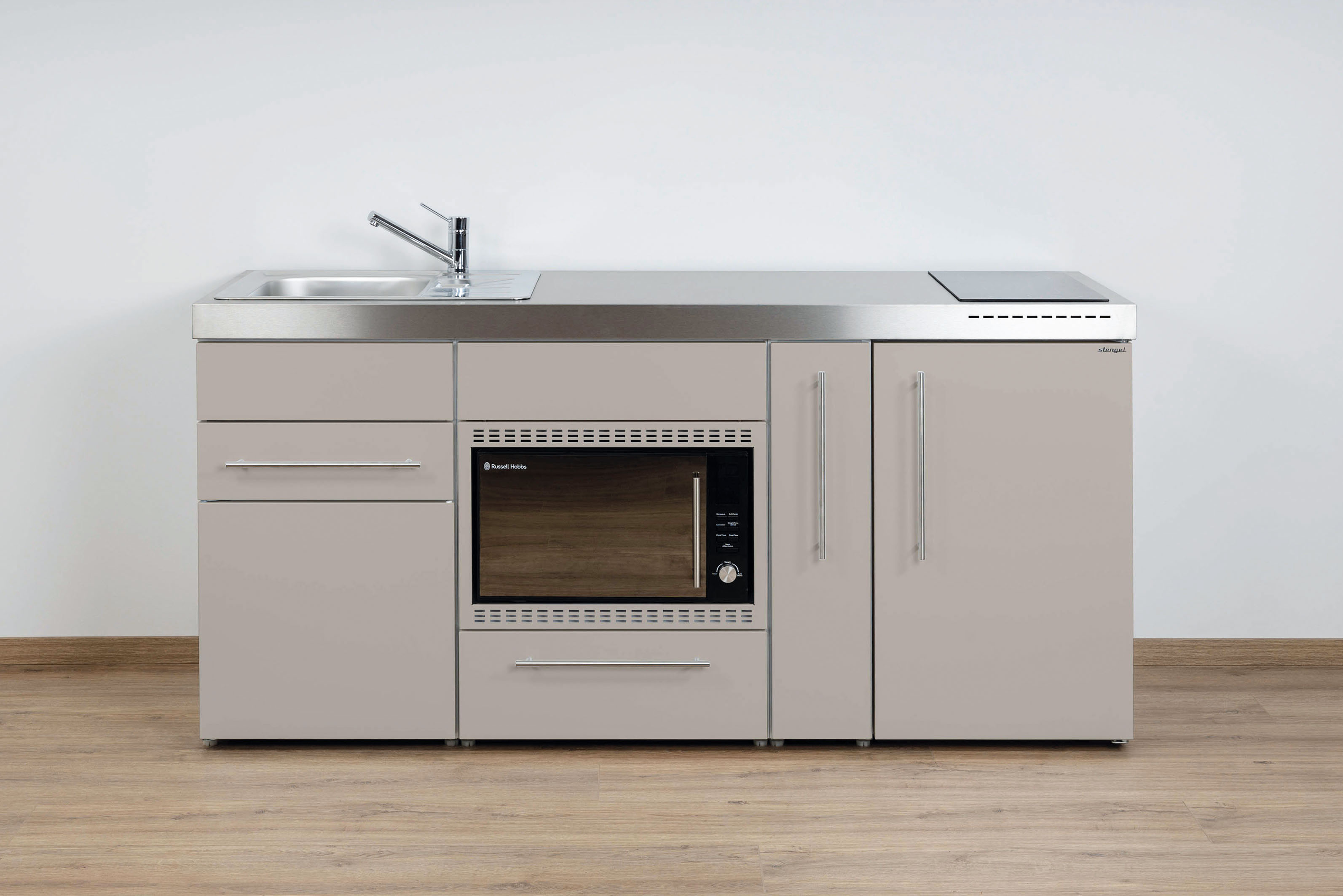 Miniküche Premiumline mit Kühlschrank, Mikrowelle/Grill, 2 Schubladen, Auszug, 180 cm breit