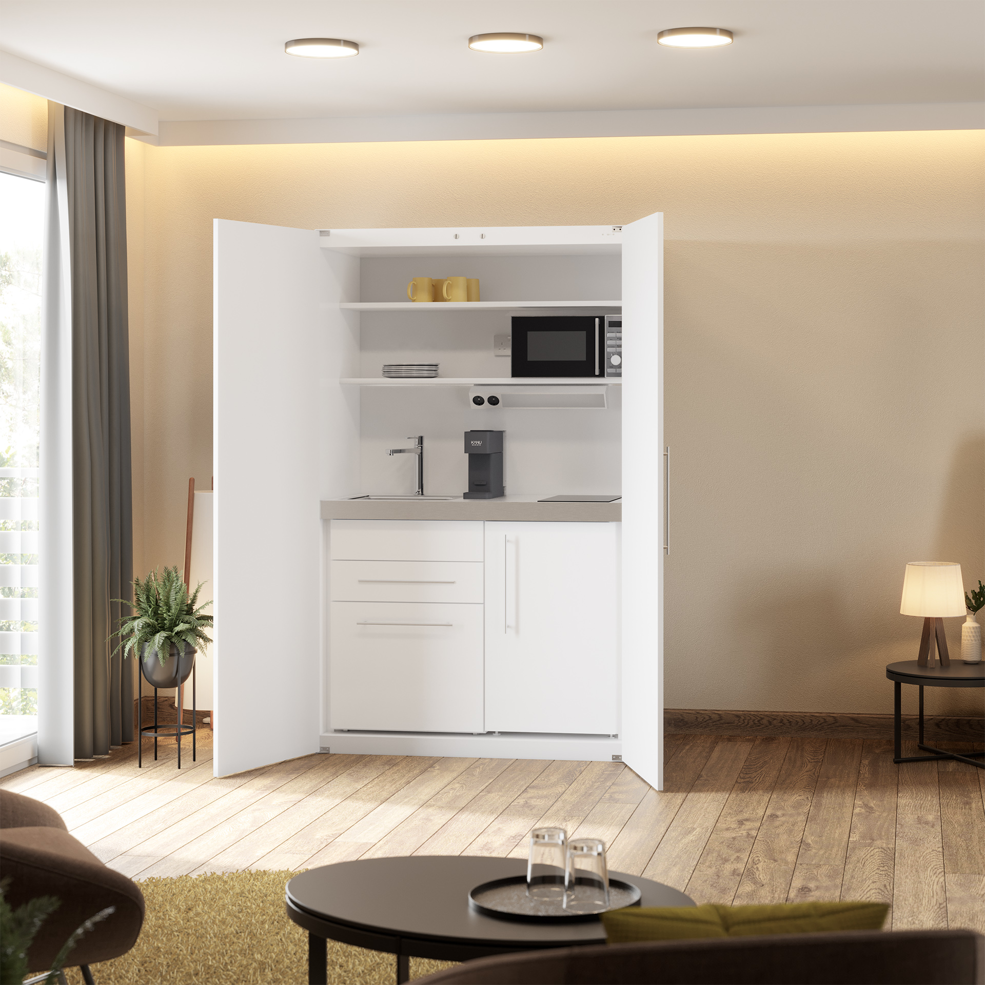 • Hochwertige Schrankküche aus pulverbeschichtetem Metall