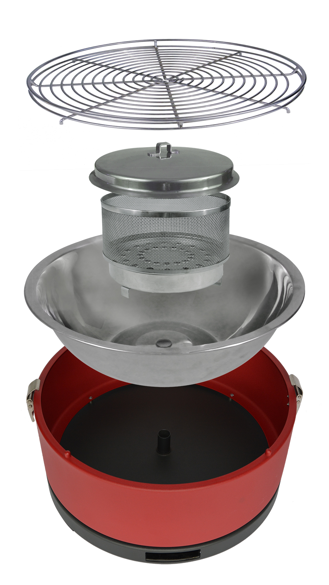 Holzkohlekorb mit geschlossenem Deckel schützt die Kohle vom abtropfendem Fett für ein rauchfreies, gesundes Grillen